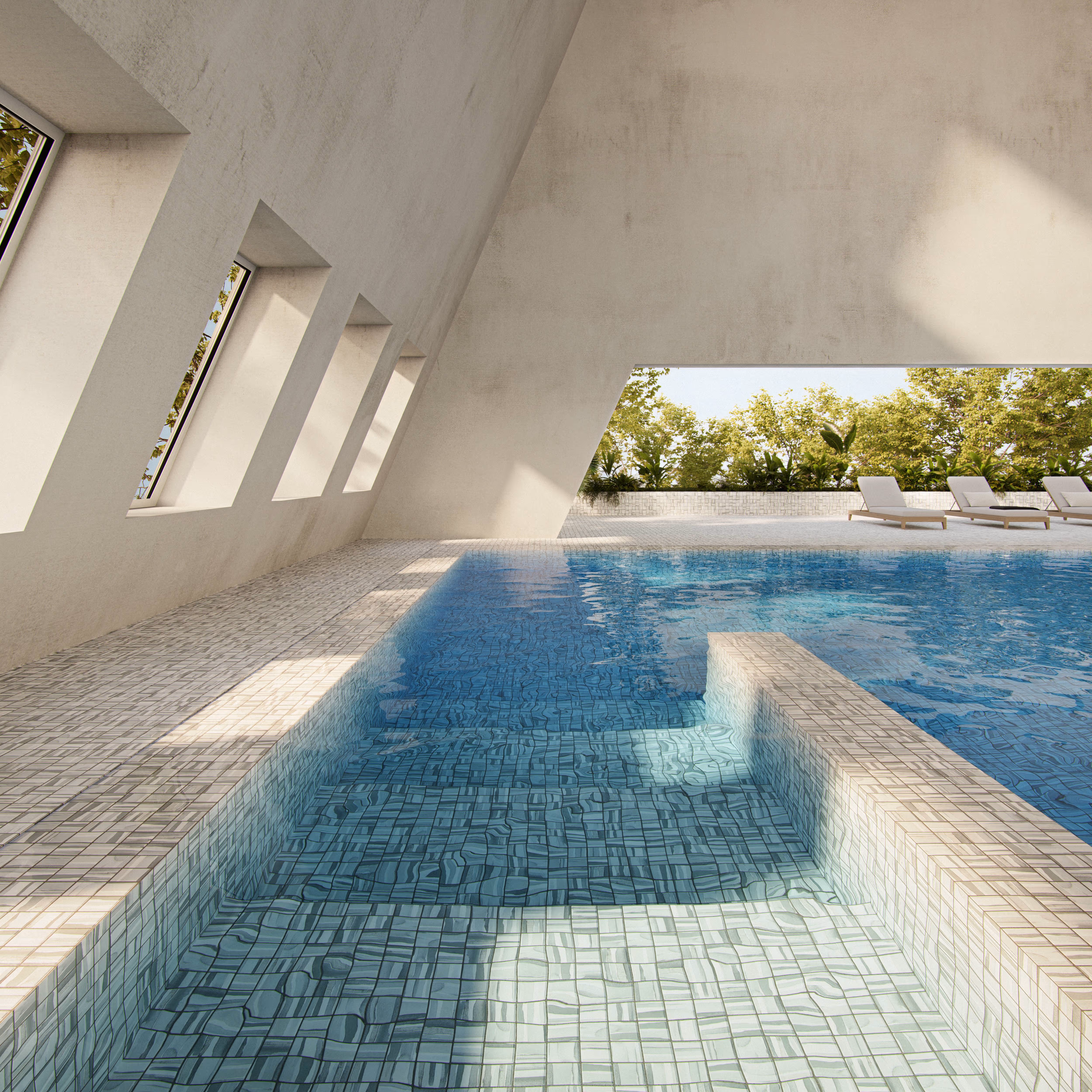 Our Corner and Cove pieces provide a seamless transition and a polished look for any space. Designed with the same non-slip texture as our mosaics, they ensure safety without compromising style.