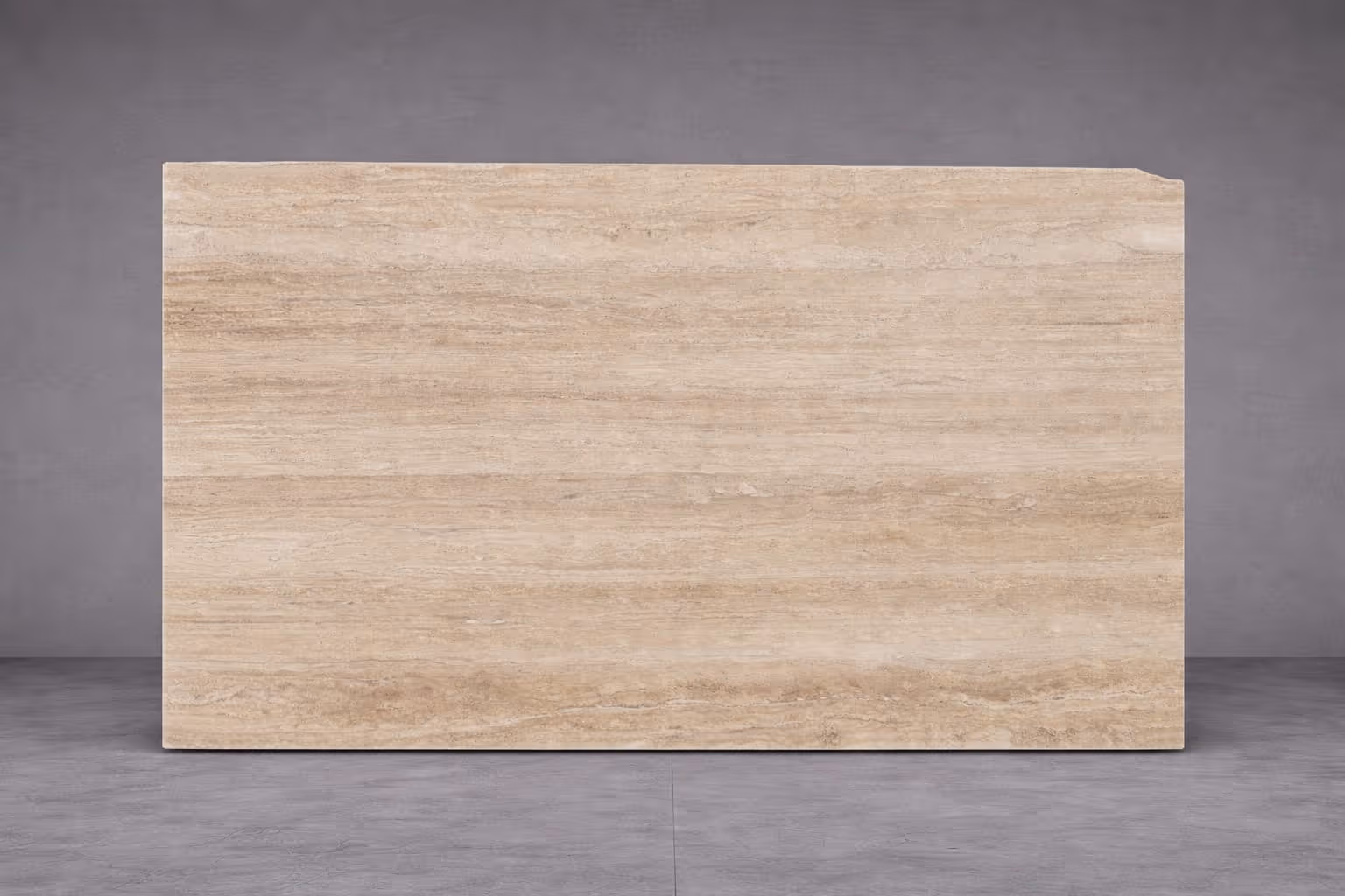 Classic Travertine is a Turkish travertine distinguished by a warm beige base with soft linear banding and subtle tonal variation in natural cream and sand tones. The stone displays gentle movement and low contrast, creating a balanced architectural surface well suited to large-format walling, bathroom interiors and kitchen benchtops. Supplied in honed 20mm slabs, Classic Travertine supports cohesive slab layouts across residential and hospitality interiors where natural texture and warm neutral palettes are desired. As a natural travertine, sealing is recommended and natural variation between slabs is expected.