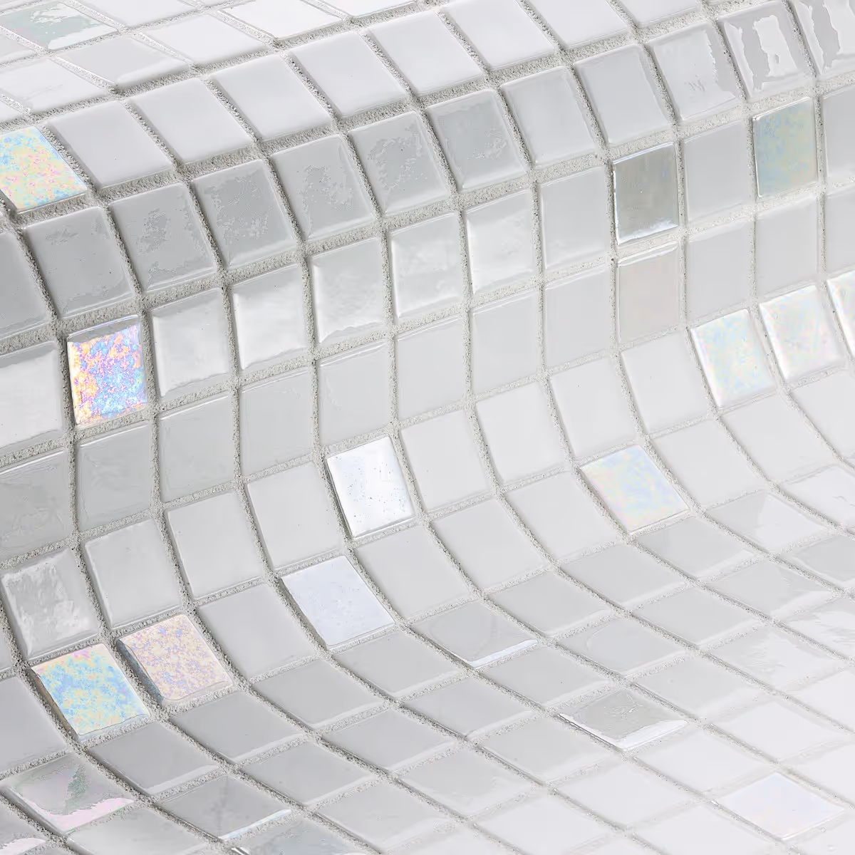 Diamond, from the Iris Mix collection, is a white iridescent mosaic specially designed for cladding interiors, swimming pools, spas, saunas and wellness spaces, and promotes relaxation and enjoyment. A treat for the senses.