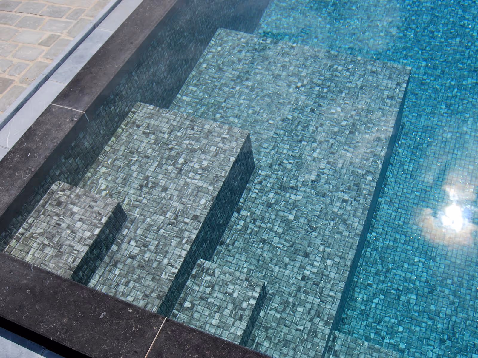 Our Corner and Cove pieces provide a seamless transition and a polished look for any space. Designed with the same non-slip texture as our mosaics, they ensure safety without compromising style.