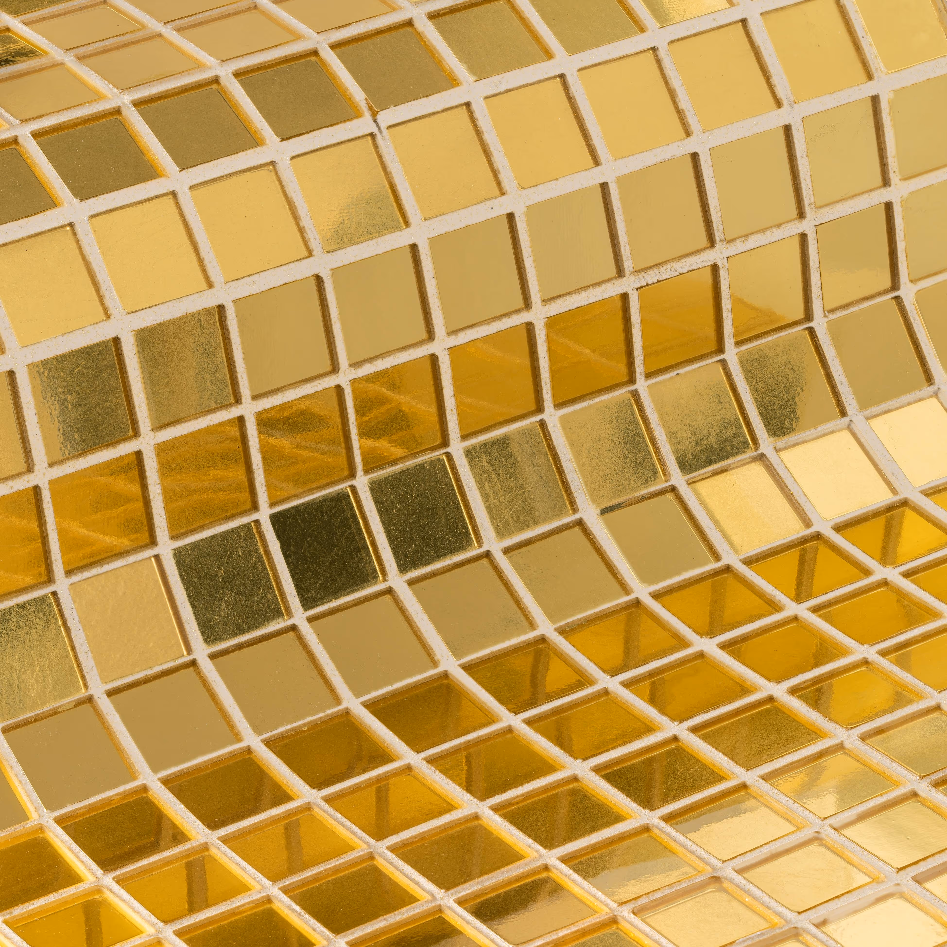A collection of pure 24 carat gold mosaic tiles. Avant-garde design that makes it possible for a pure and noble element such as gold to take form and function, giving light and value to unique spaces worthy of admiration. Taste and distinction. Reflection and balance. Tradition and modernity come together to adorn places of dreams with elegance and meaning, made of gold.